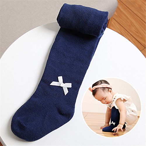 赤ちゃんの幼児の女の子かわいいちょう結びウォームネイビータイツのレギンスパンティーストッキング6-12ヶ月