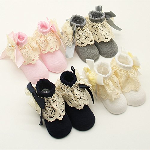 - 小さな赤ちゃんの足元をラブリーに彩るレース付きのショート丈クルーソックスです