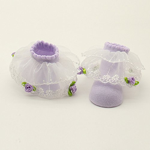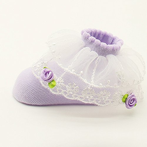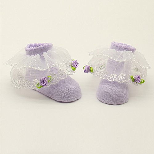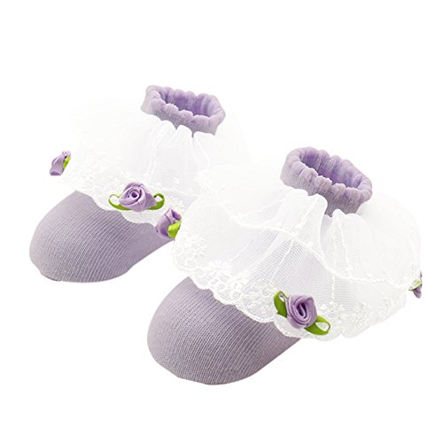 幼児の赤ちゃんの女の子の甘いレーストリムパープルプリンセスソックス