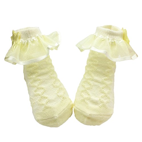 ベビーイエローキュートレースフリルフリルアンクルソックス
