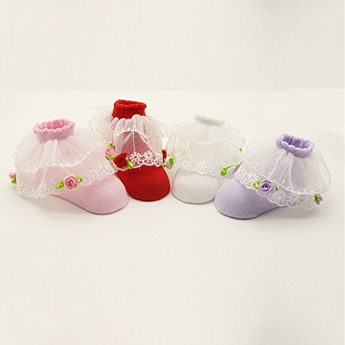 - レーストリム、甘く美しい、明るい色の赤ちゃんの靴下は、あなたの小さな王女に適しています。四季スタイル。