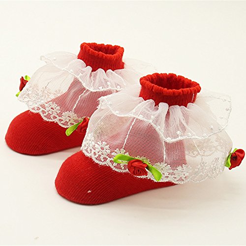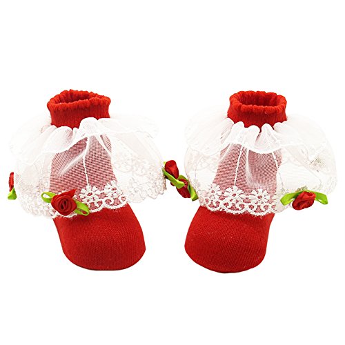 幼児の赤ちゃんの女の子の甘いレーストリムレッドプリンセスソックス