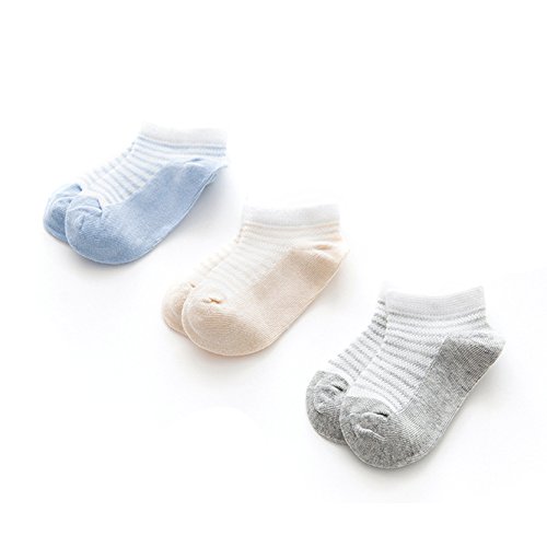 キッズ子供靴下0-1歳 3セット コットンストライプサマーメッシュアンクルソックス