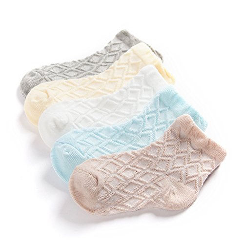 幼児子供コットンアンクルメッシュソックス菱形デザインソックス5ペア0-1 歳