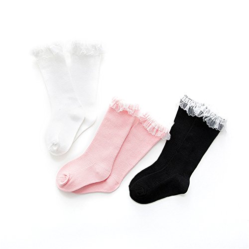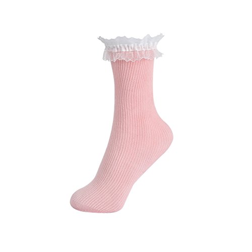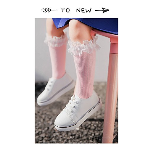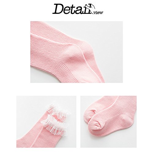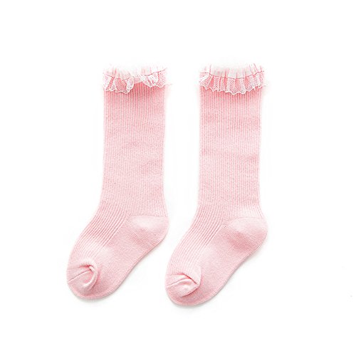 ベビー子供キッズコットンレースソックスダンスチューブソックスピンク4-6 歳