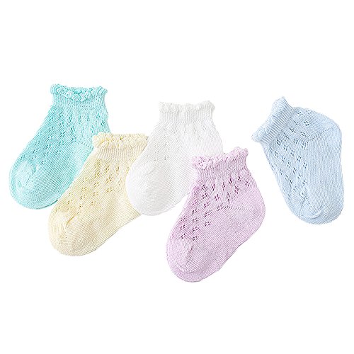 5パック幼児ベビーコットン通気性メッシュ薄い靴下 4-6歳