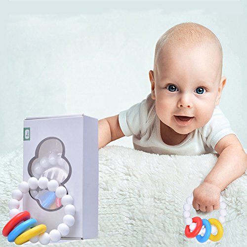 Liebeye おしゃぶりおもちゃ 赤ちゃんの幼児シリコーンかわいいビーズのブレスレット噛むリングおもちゃ ホワイト