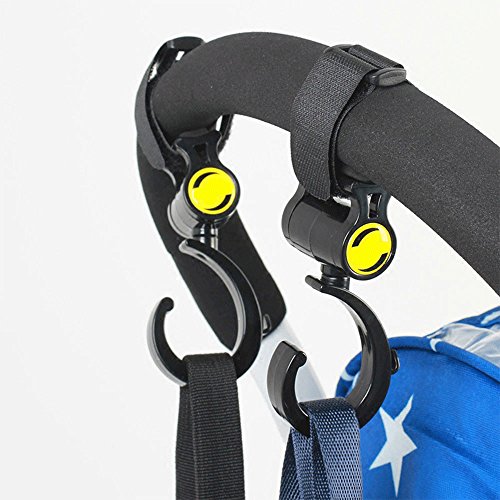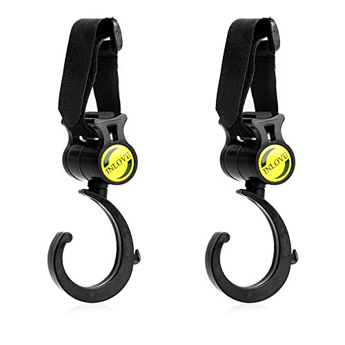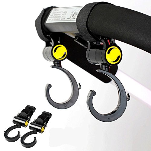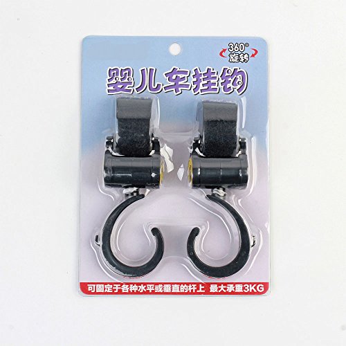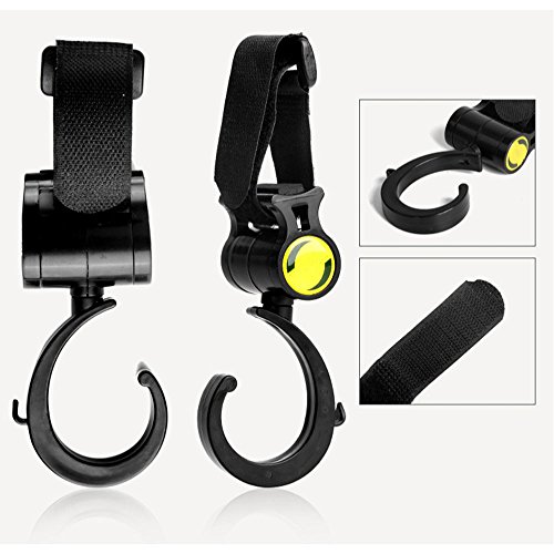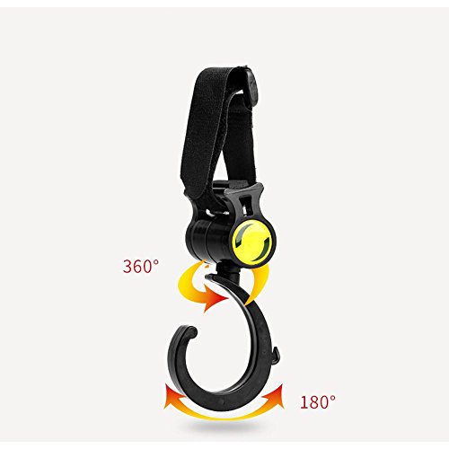 Liebeye ベビーカーフック トロリーフック ベビー ベビーカー用 360度 回転 マジックテープ プラスチック 多機能フック 2個・パック ブラック 360度
