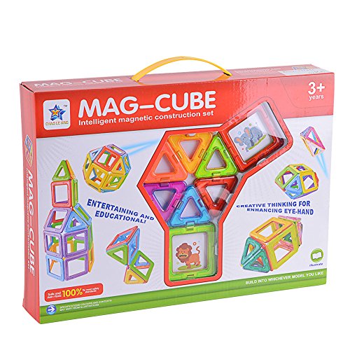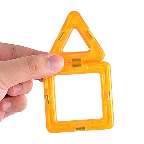- '強力な磁石をしっかりと保持してブロックを積み重ねることで、2次元から3次元の形状まで簡単に構築できます。'