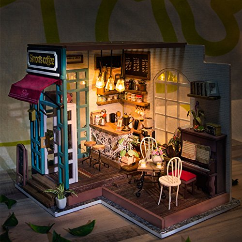 Liebeye カフェのモデル 創造的なの組み立てられた ライトつき 子供 大人のためのクリスマスのギフト 手作りの家の成果物