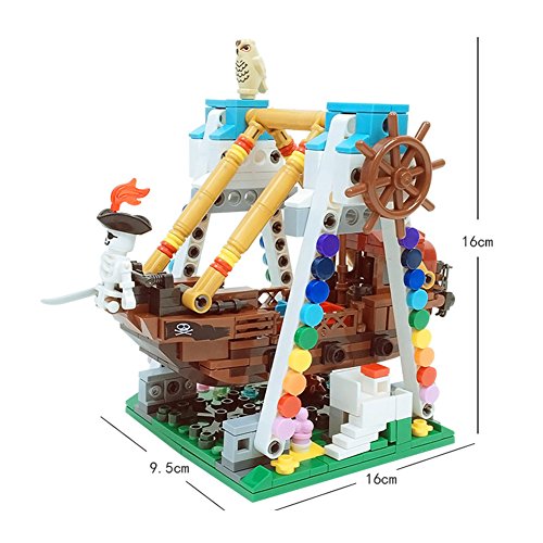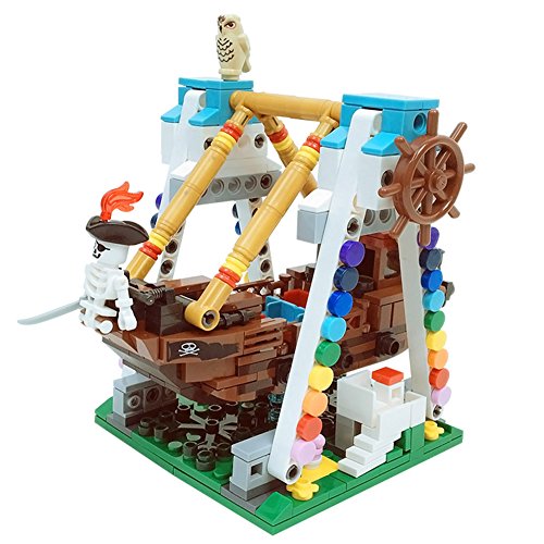 - 組み立てられた海賊船は揺れることができ、舵は360度回転できます