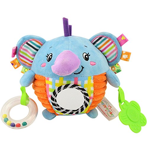 - - 頭の上に布リングがあり、ベビーベッドやベビーカーに掛けることができます。