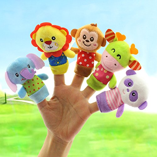Liebeye 指のおもちゃ 異なる漫画ベルベット小さな動物は指のおもちゃを認識する幼児のための指人形赤ちゃん子供たちの不安ストレスリリーフ 5ピース