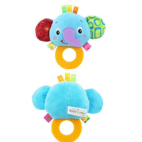 Liebeye にぎる かむ歯固め 赤ちゃん おもちゃ ラトル 歯がため なめなめ ベビー おしゃぶり 0歳から 出産祝い 知育玩具 赤ちゃん おもちゃ ぬいぐるみ 象 猿 ライオン ラトル人形 幼児ギフト ブルー
