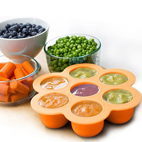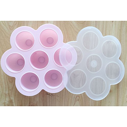 Liebeye ベビーフード収納 7ホール ベビーフード コンテナ 離乳食保存容器 トレイ 冷凍保存皿 製氷皿 シリコーン製 耐熱 -40℃~+240℃ ピンク