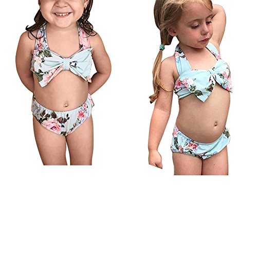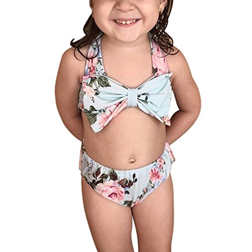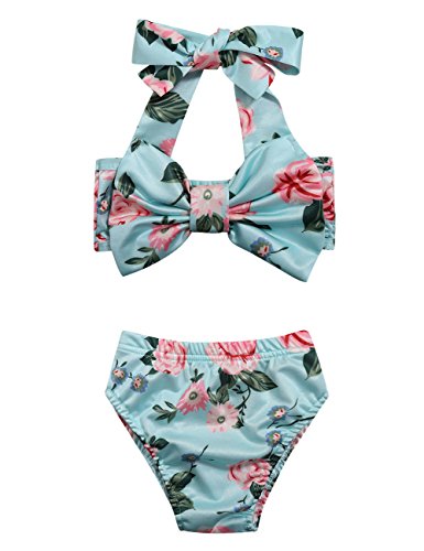 Liebeye ビキニ 2点セット 水着 子供 女の子 幼児 ベビー 花柄 蝶結び スイミング 6-12M