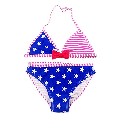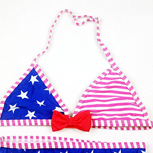 Liebeye ビキニ 2点セット 水着 女の子 子供 ガール 米国 国旗 ちょう結び ビーチ 夏 140