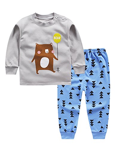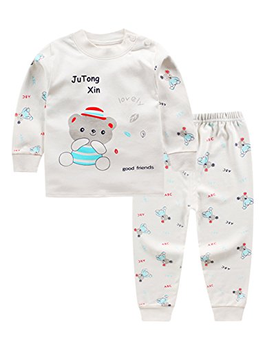 Liebeye パジャマ ホームウェア カジュアル ベビー アンダーウェア セット ロングスリーブ シャツ ロングパンツ かわいい クリスマ スギフト 2個セット 60/90cm ハッピーベア