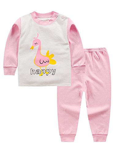 Liebeye パジャマ ベビー キッズ コットン 下着 ホームスーツ 漫画の服 二個セット 120/75 Aリトルスワン