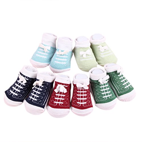 - 靴ひものパターンが付いたかわいいちょう結びの前部は、0-6ヶ月の新生児、乳児、赤ちゃんに最適な素敵なショートソックスをプリントしています。