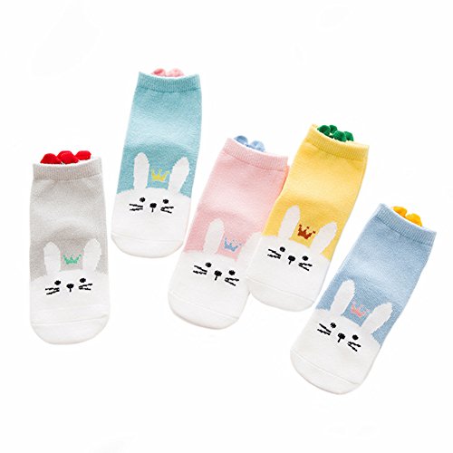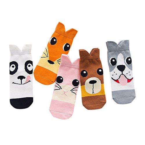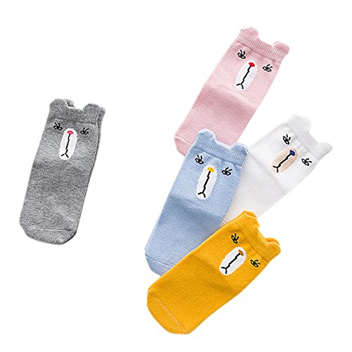 Liebeye ソックス コットン パック 赤ちゃん 通気性 かわいい 漫画 3形状 アンクレット ソックス 5ペア L(6-8歳) c389大きい耳