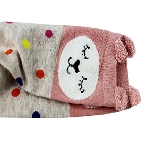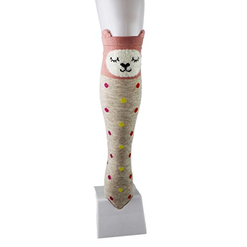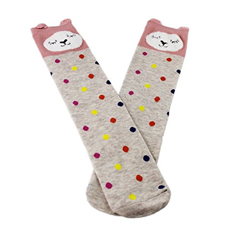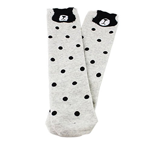 Liebeye ガールコットンニーハイソックス ミッドカーフ レングスソックス カラフル かわいい フリーサイズ 黒い斑点グレークマ