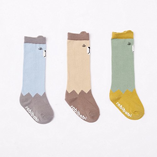 Liebeye キッズストッキング 3ペア ソフトコットン ベビー カーフニー ハイソックス 動物 かわいい くま S-0~2歳