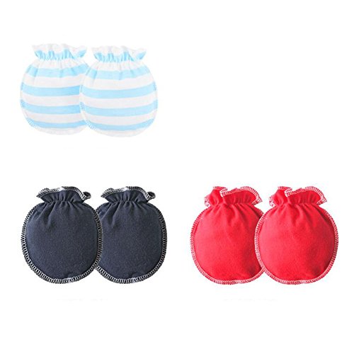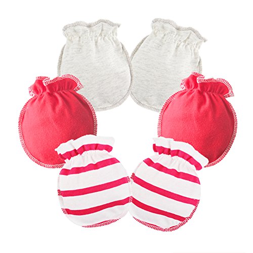 Liebeye 幼児手袋 3ペア 0-3ヶ月新生児用 ソフトコットン 傷防止 赤