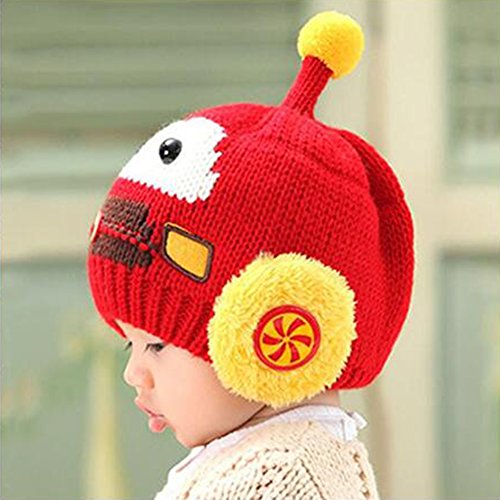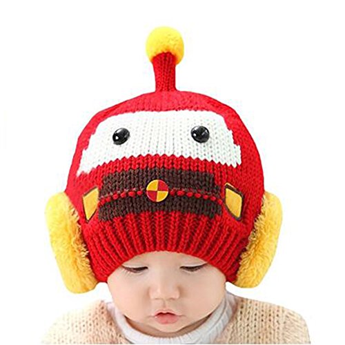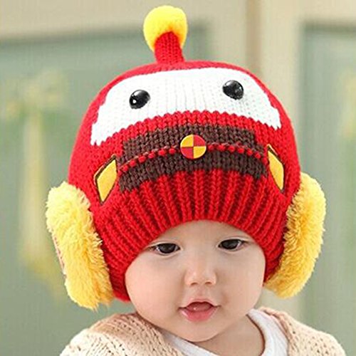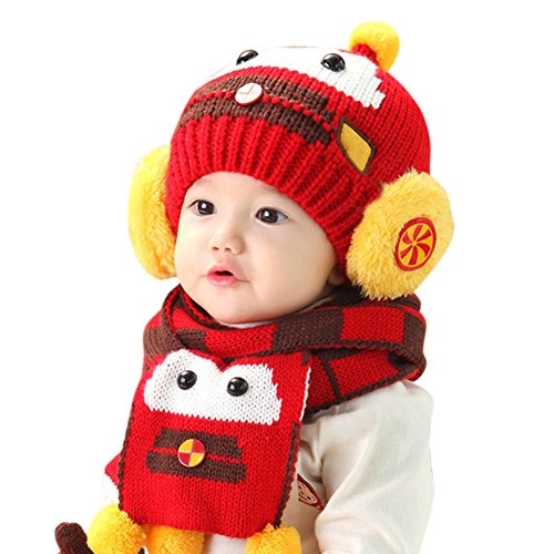 Liebeye 帽子+スカーフ ベビー ガールズ ボーイズ ウィンターフェイク ぬいぐるみ ウォームキャップ ビーニー パイロット アビエーターイヤーフラップ 46-52cm レッド