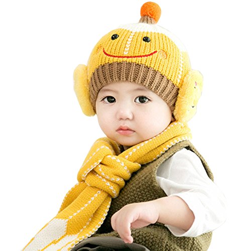 Liebeye ニット帽子とスカーフのセット 赤ちゃん 女の子 男の子 かわいい 暖かい赤ちゃんの冬の帽子ビーニーキャップ 6-12月 6-36 months イエロー