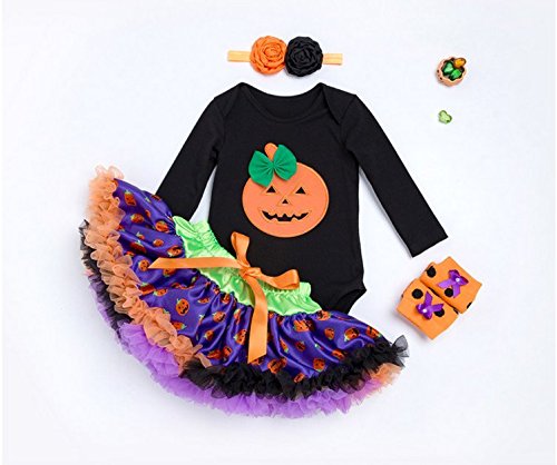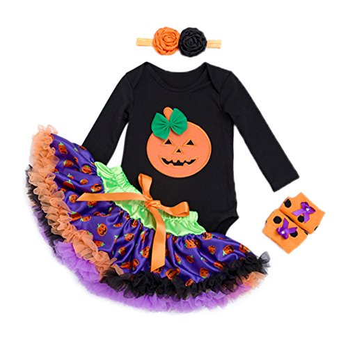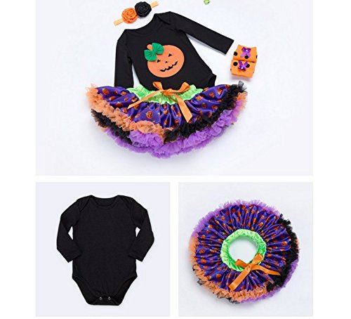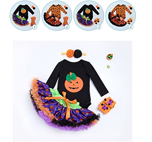 Liebeye ロンパース ハロウィン ベビー服 女の子チュールスカート+ロンパース+ヘッドバンド+レギンスセットコットンパーティー服装 S 1