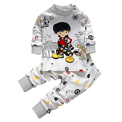 Liebeye ベビー服セット 女の子 男の子 カジュアル ロングスリーブ Tシャツ ロングパンツ かわいい キュート パジャマ クリスマスギフト 2PCS キャップをかぶったハンサムな男の子 80cm