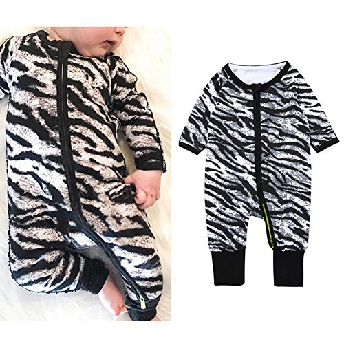 Liebeye 赤ちゃんンジャンプスーツ 新生児 ユニセックス かわいい ソフトコットン ロングジッパー クロージャーロンパー アウトドア 洋服 ゼブラ模様 80cm