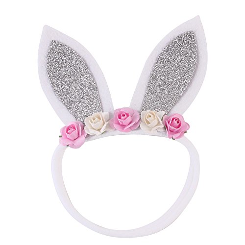 Liebeye ヘアバンド 髪飾り 幼児 赤ちゃん 子供 漫画 ウサギのみみ 女の子 ヘッドバンド かわいい 花 アクセサリー 春 B silver
