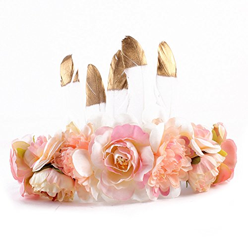 Liebeye ヘアバンド ベビー 新生児 赤ちゃん 子供 キッズ ファッション 花輪 ヘッドバンド クラウン ガーランド 髪飾り カーキ