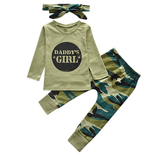 Liebeye 子供パジャマパンツ+長袖シャツ キッズ 通気性 服セット ソフトコット スーツ 女の子はヘアバンド付き カモフラージュ ロングスリーブガール3pcsセット 100cm
