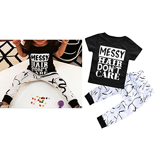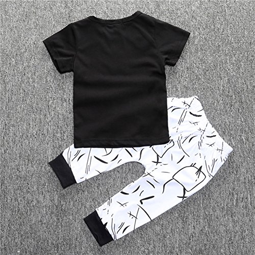Liebeye 2PCS/セットコットンスーツ 子供 赤ちゃん 半袖シャツ+ロングパンツ ファッション レターパターン カジュアル 服セット 70cm