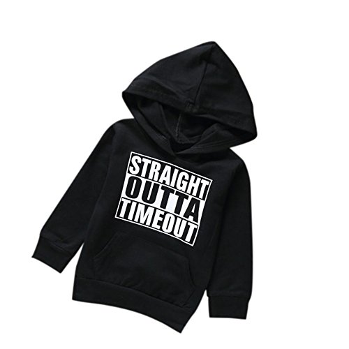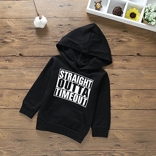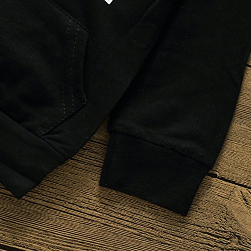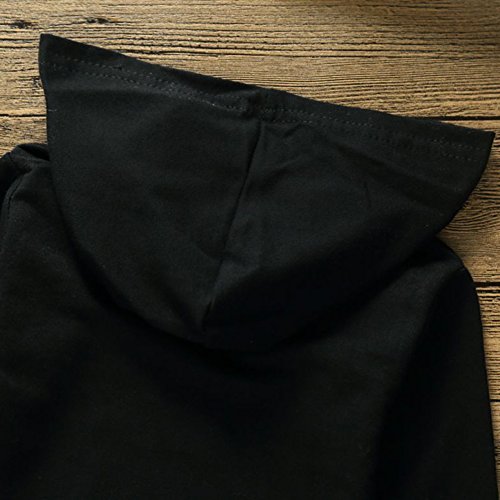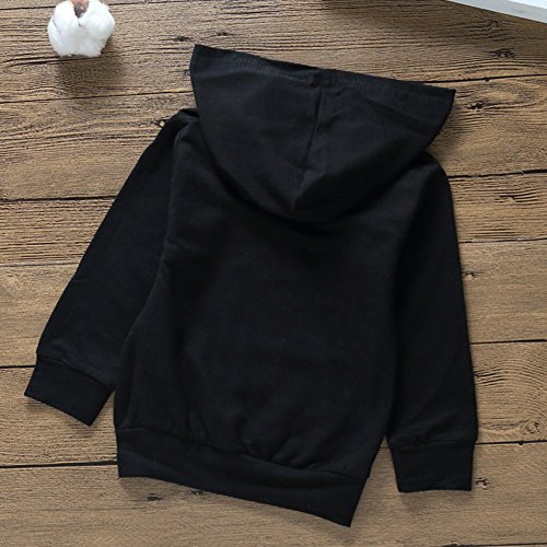 Liebeye 赤ちゃんフード付きトップス 子供 ユニセックス レタープリント ロングスリーブ ブラックカラー コットンセーター 110cm