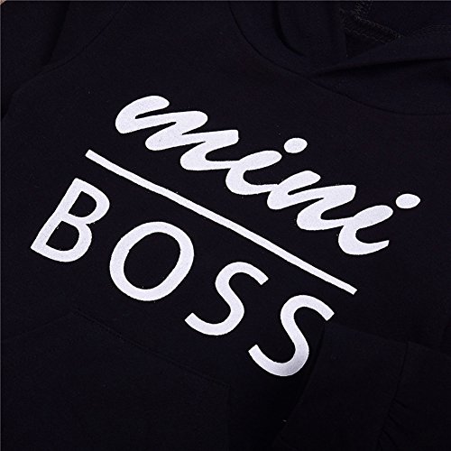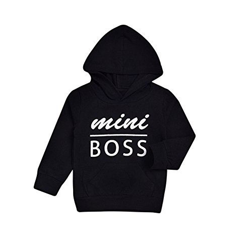 Liebeye 赤ちゃんフード付きトップス ユニセックス ファッション おしゃれ ブラックコットン ロングスリーブ カジュアル セーター mini boss 120cm