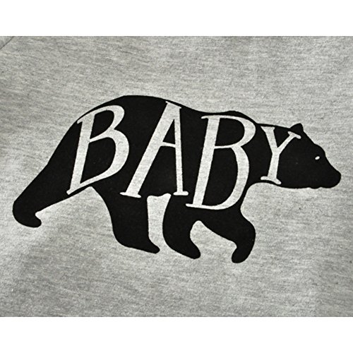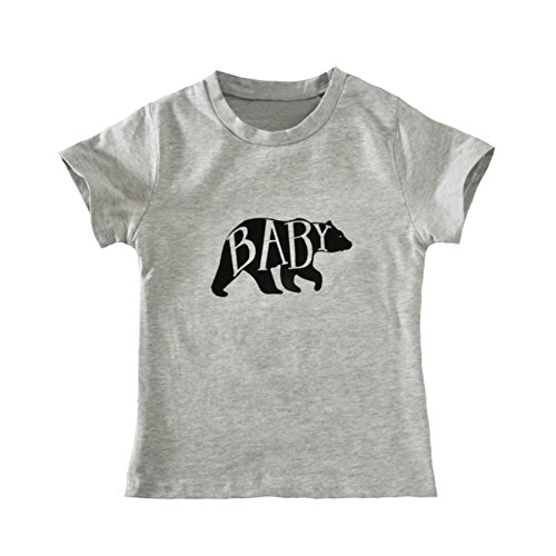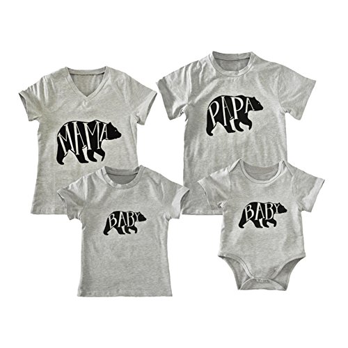 Liebeye シャツ 親子 お揃い 子供 ロンパース 父 母 幼児 赤ちゃん 半袖 シンプル 丸首 動物 クマ ベア 上着 グレー Children C 90