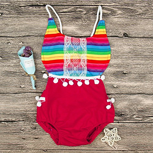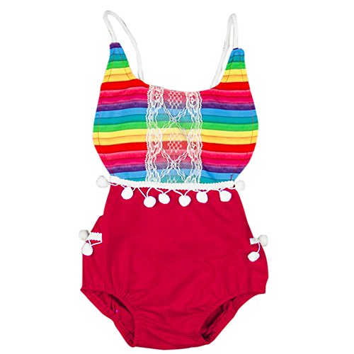 Liebeye 赤ちゃんロンパース 女の子 レインボー ストライプ かわいい ボール ジャンプス ギフト レッド 100CM