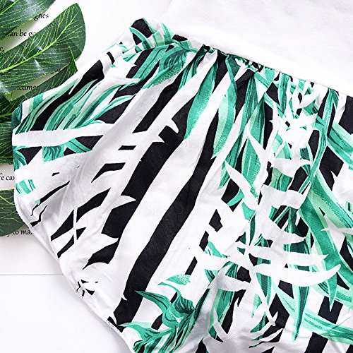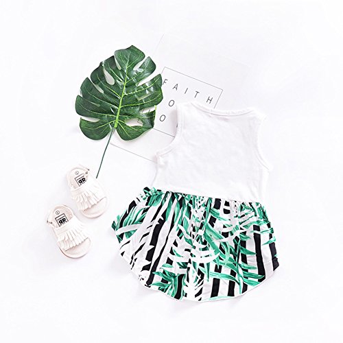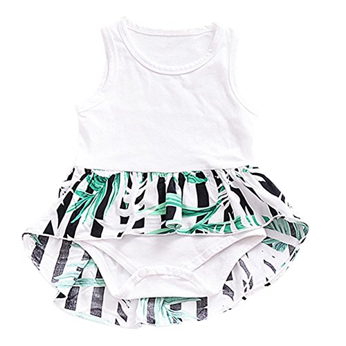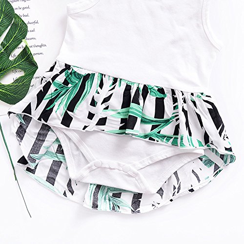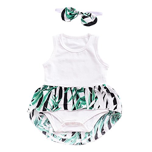 Liebeye 赤ちゃんロンパー 女の子 ノースリーブ コットン 竹パターン ジャンプスーツ ヘアバンド付き ホワイト 80cm