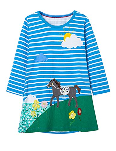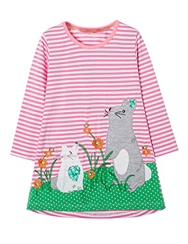 Liebeye 少女プリンセスドレス 子供 ストライプパターン ロングスリーブ かわいい ギフト 贈り物 スタイル8 4T