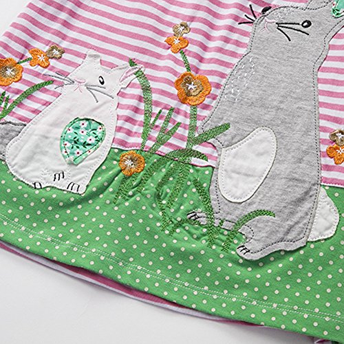 - [美しいドレス] - ストライプの要素、明るい色、漫画の動物の刺繍パターン、鮮やかな牧歌的なスタイル。