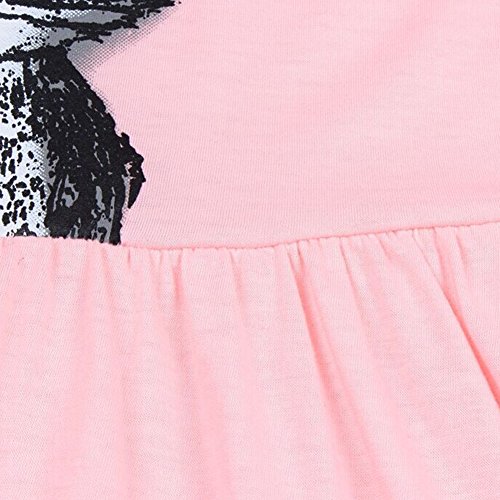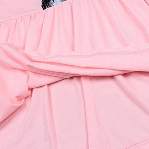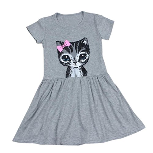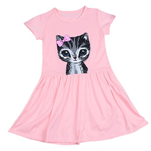 Liebeye 赤ちゃんスカート かわいい ラウンドネック ちょう結び 猫プリント コットンスカート おしゃれ プリンセスドレス ピンク 110cm