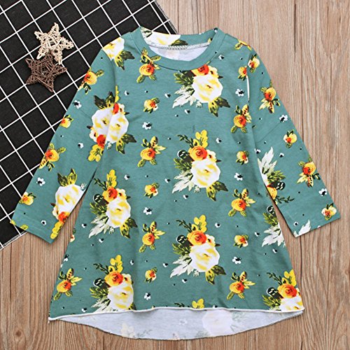 Liebeye 女の子プリンセスドレス ガール ロングスリーブ フラワープリント ファッショナブル かわいい ラウンドカラー ドレス スカート グリーン 110