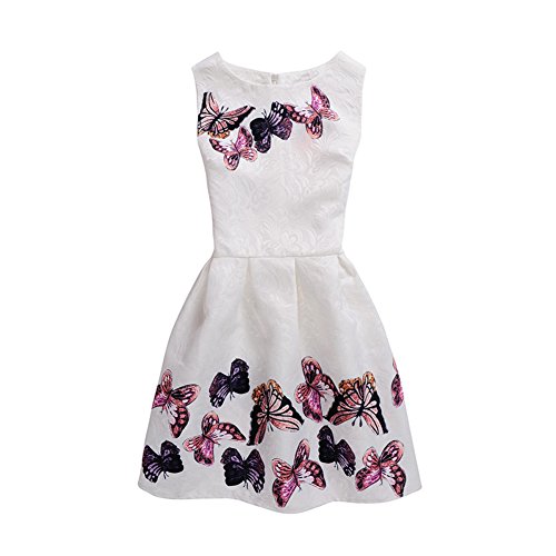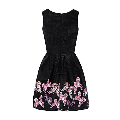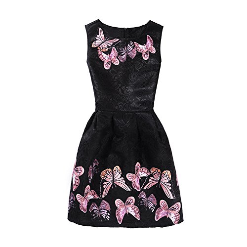 Liebeye 女の子ドレス スタイリッシュ 蝶パターン ノースリーブ ミディアムスタイル スカート ギフト 黒 160cm
