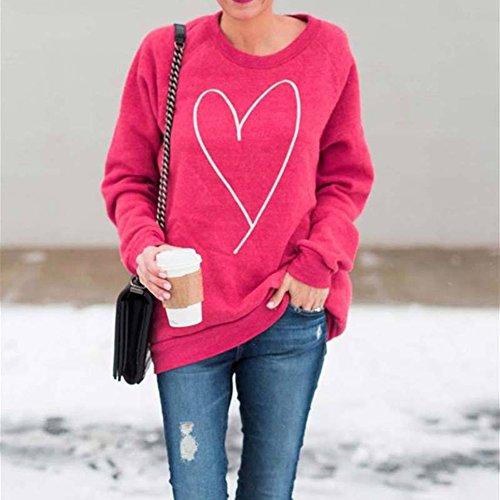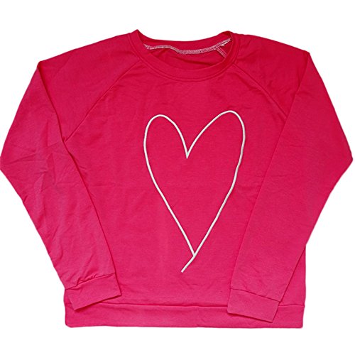 - [ファッションスーツ] - ハートのパターンとラウンドカラーのTシャツ、長袖、純粋な色、シンプルで美しい。