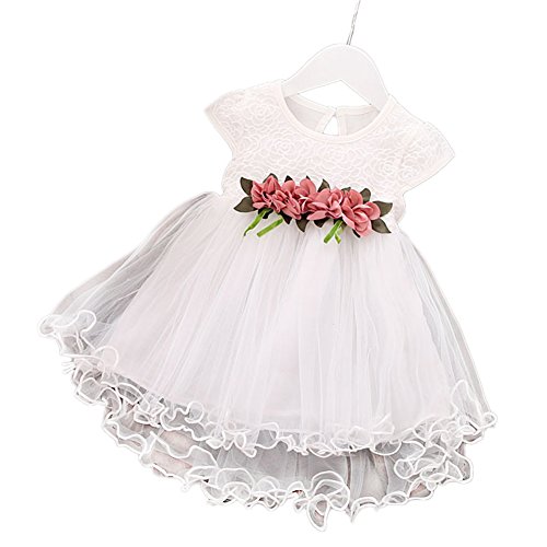 Liebeye 女の子プリンセスドレス ノースリーブ ウエストフラワー ふわふわ ギフト ファッショナブル ラウンドカラー レース ドレス スカート ホワイト 100cm