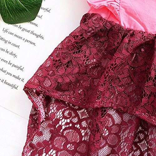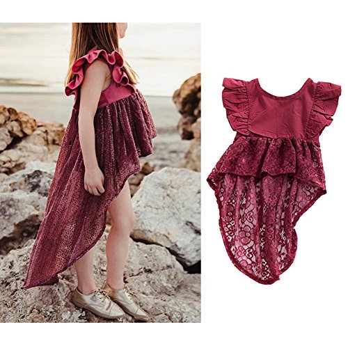 Liebeye 女の子ダブテールドレス ファッション 不規則 かわいい ラウンドネック コットン スカート H717ピンク 90cm